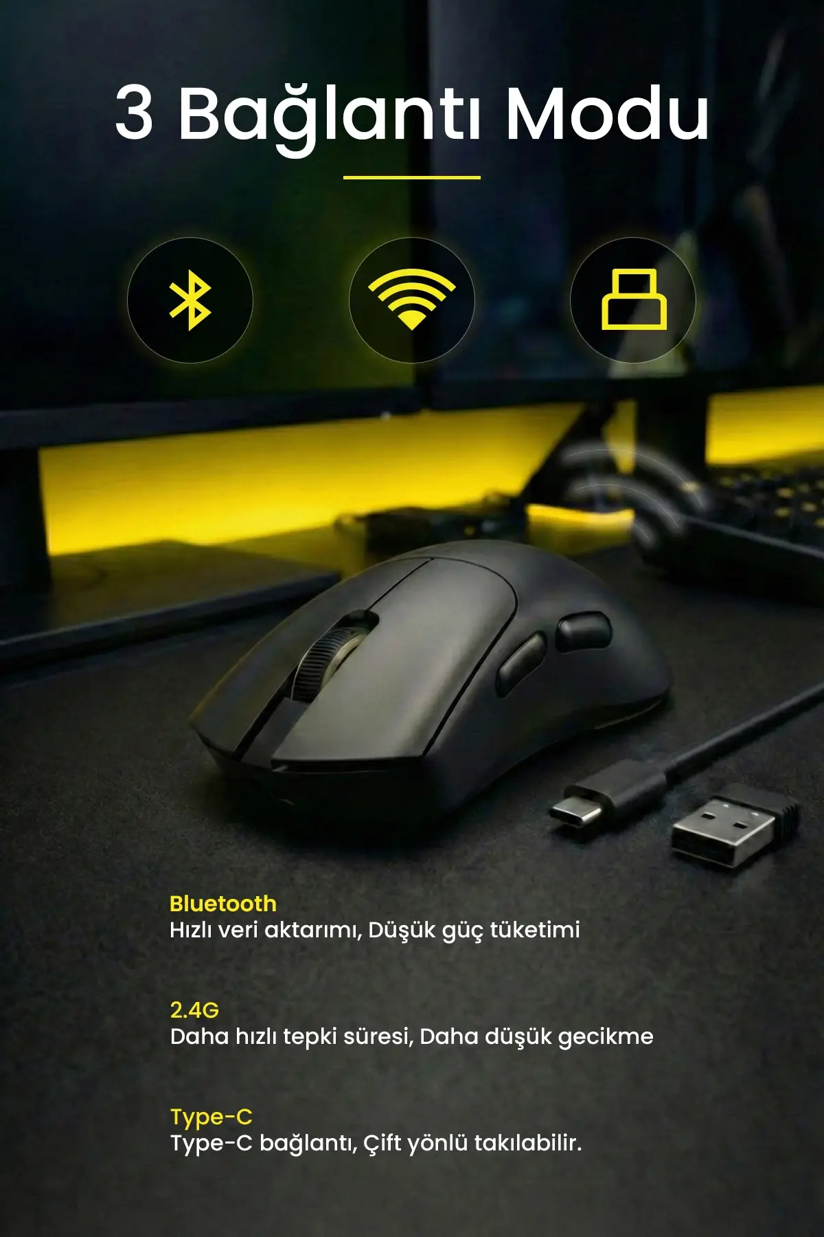 Gameagle PROX-59B Serisi Hafif Kablosuz 3 Mode Oyuncu Gaming Optik Mouse (Siyah)