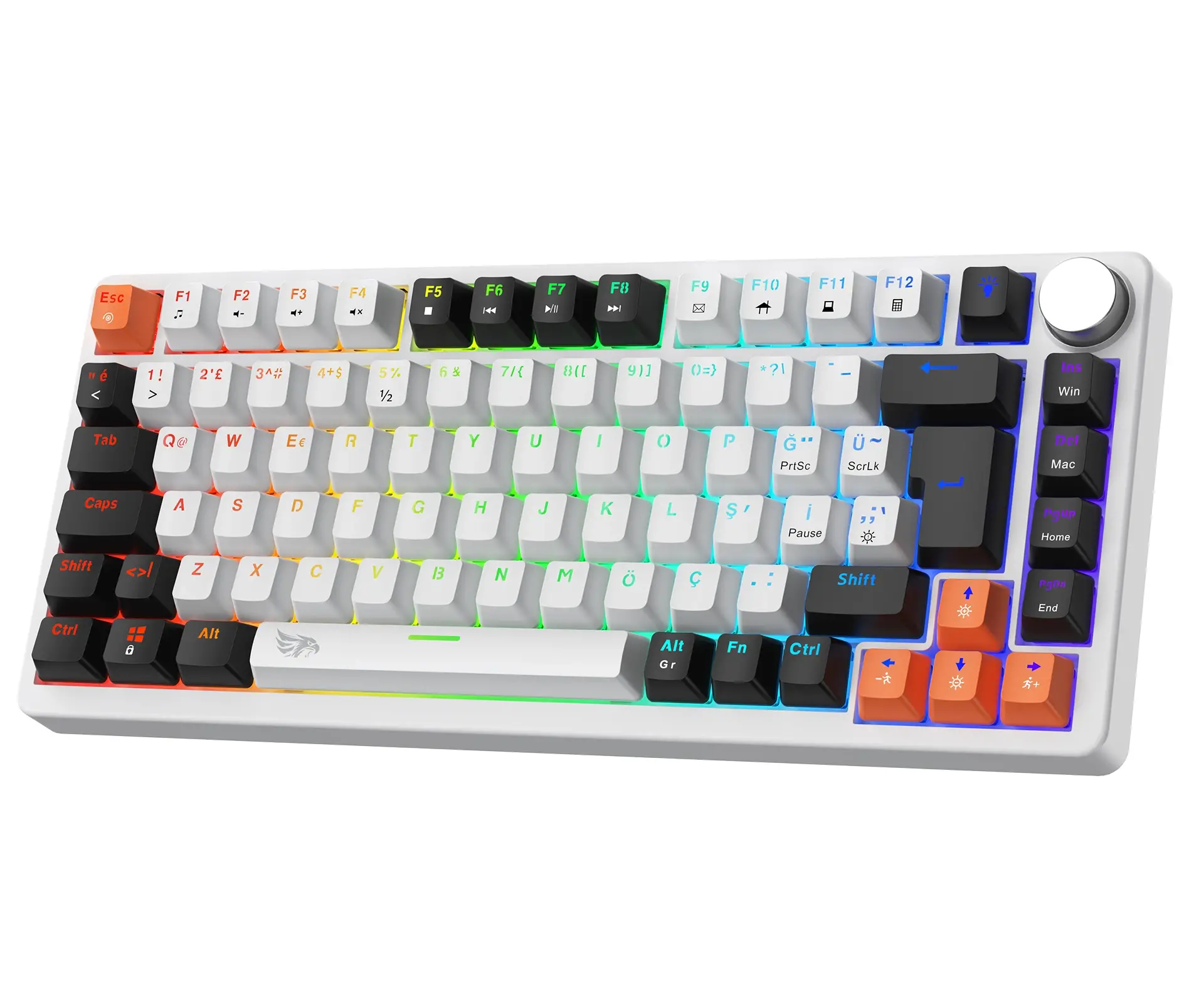 Gameagle Strike Compact V2 Rainbow Kablolu TR Layout Mekanik Oyuncu Klavyesi Beyaz Red Switch