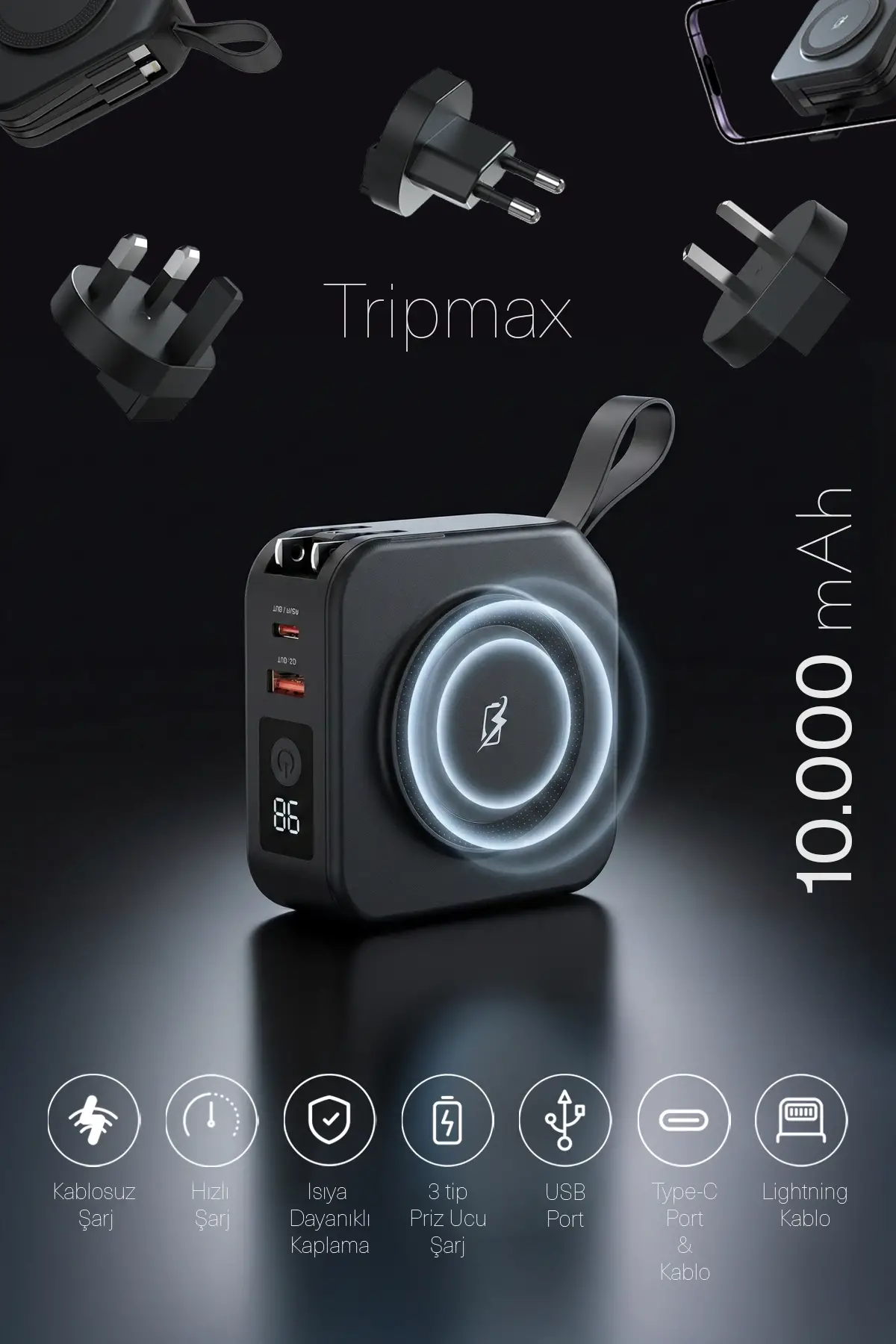 Pars Power Tripmax PRS-M001B Gan Adaptörlü Power Bank (Siyah)
