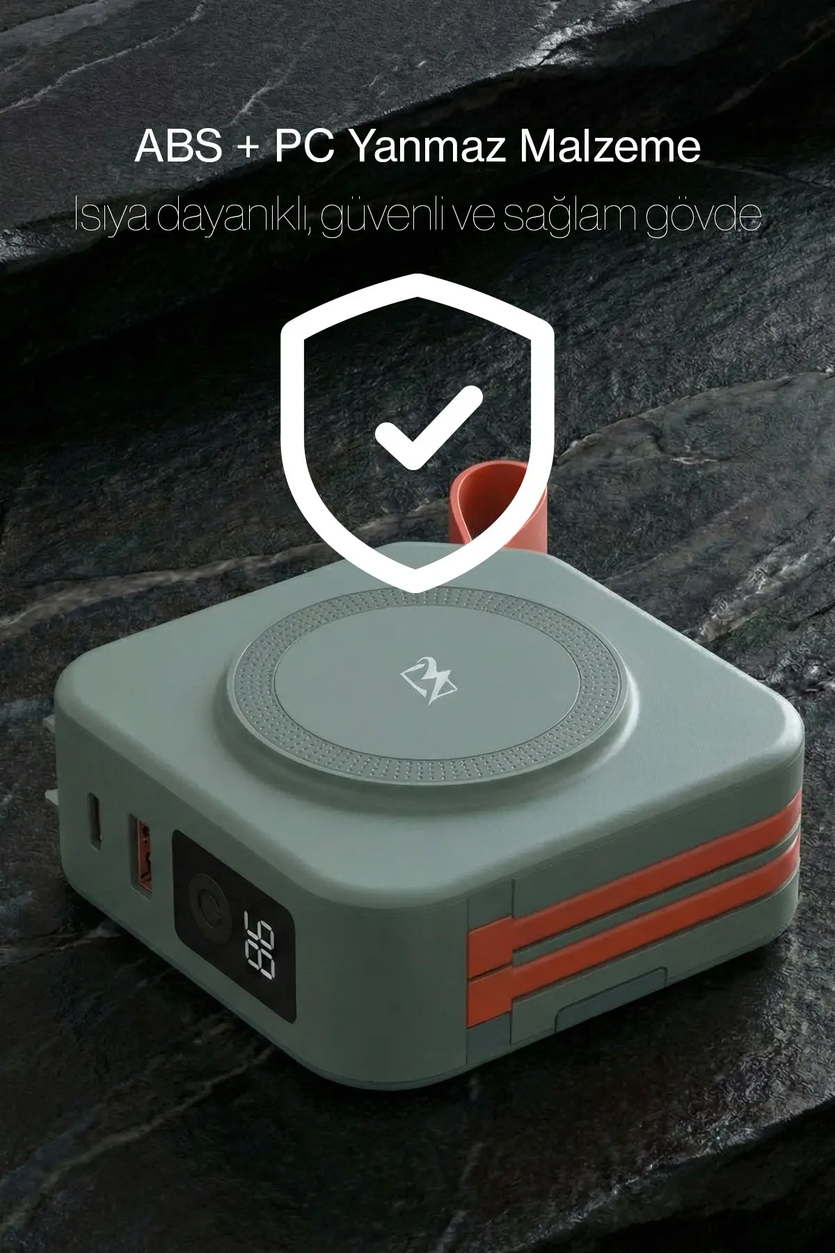ParsPower Tripmax Gan Adaptörlü 10.000mAh MagSafe+Duvar Şarjlı+3 Tip Priz Başlıklı Kablosuz Powerbank Yeşil
